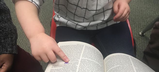 In the preschool class that I teach, I have felt a personal conviction to not teach from a tablet or a video or a guide. I teach two year olds so I also don’t read directly from my Bible. But I do have it open on my lap as I summarize the story on their level. I draw a little purple heart by the Bible passage I am teaching from that week. I remind them every single week that we are reading from God’s word and that means what we are reading is true. I hold the Bible open and let each of them reach out their sweet little finger and touch the purple heart. I desperately want them to know that when we open that sacred book, it’s important enough to stop and listen. It’s special. I want them to know that what I’m teaching isn’t some made up fairy tale. Or even just a really nice story with a good moral lesson in the end. It’s not Ms. Lindsey’s opinion of what the Bible says either. I want them to know it’s God’s word and it’s the most valuable thing they could ever read.
